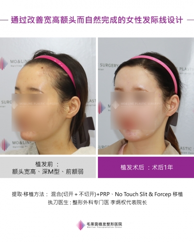 女性宽大不对称发际线矫正 面部提升术后两侧变宽的重建