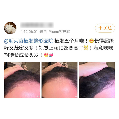 女性植发术后再修复|改善不自然发际线与棱角额型|微博患者评价