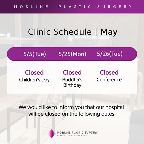 - May 25 (Mon): Closed | Buddha's Birthday - May 26 (Tue) : Doctor Unavailable – Treatment Only |