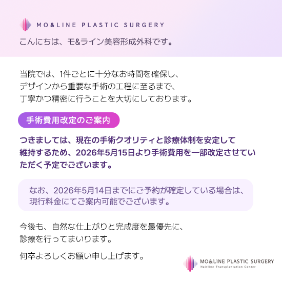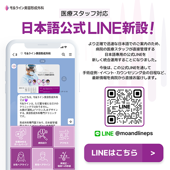 ※ 下記のモ&ライン美容形成外科【公式LINE】を友だち追加していただくと、よりスムーズかつ迅速にご案内が可能です。