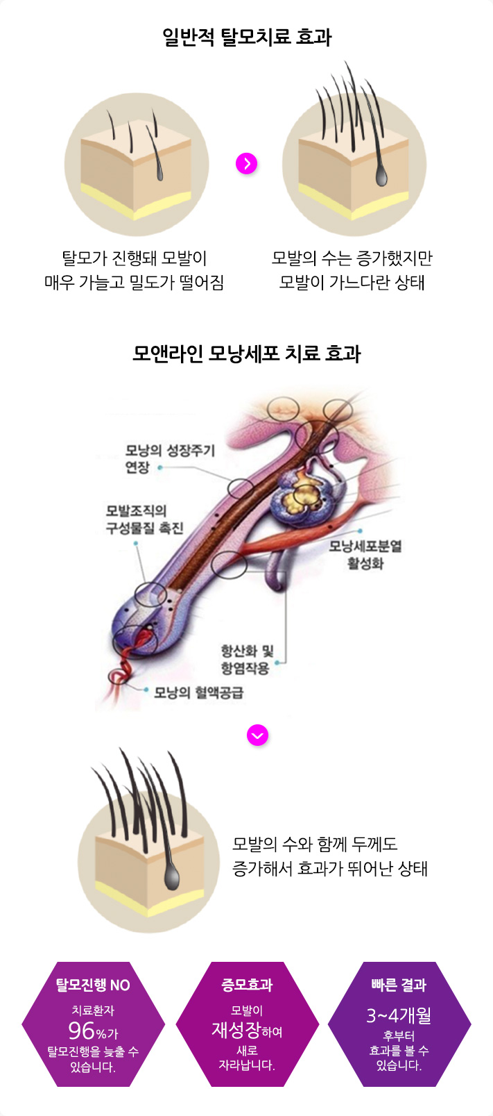증모효과 - 모발이 재성장하여 새로 자라납니다.