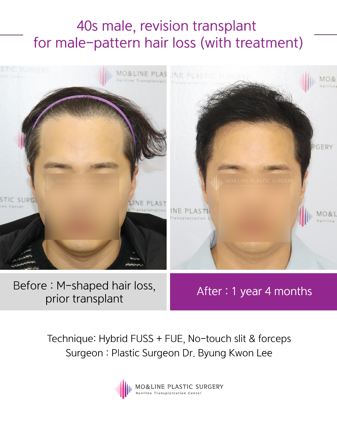 | Title | 40s male, revision transplant for male-pattern hair loss (with treatment) | |||||||||