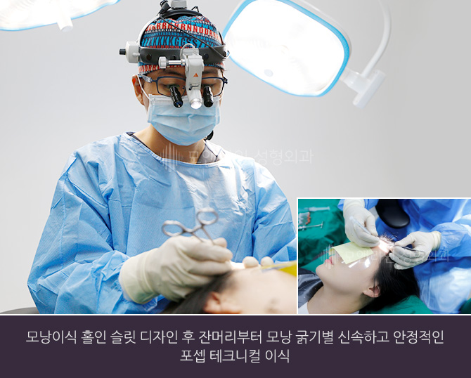 모낭이식 홀인 슬릿 디자인 후 잔머리부터 모낭 굵기별 신속하고 안정적인 포셉 테크니컬 이식